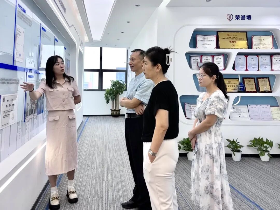 拜访领导一行先是在综合办公室主任王露和研发科学家杨轶晴的详细引介下,进一步分析了深圳凯发K8的战略定位、创始团队、企业愿景、开展历程、核心技术优势以及四大服务平台。